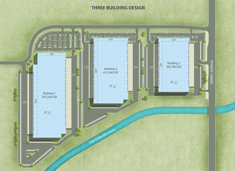 Patterson Logistics Center industrial building at 2553 Sperry Avenue in Patterson, CA. It is zoned for light industrial use. See brochure below for three building designs. It has the lowest development fees in the areas. Located off Baldwin Road, easy access to Interstate 5.